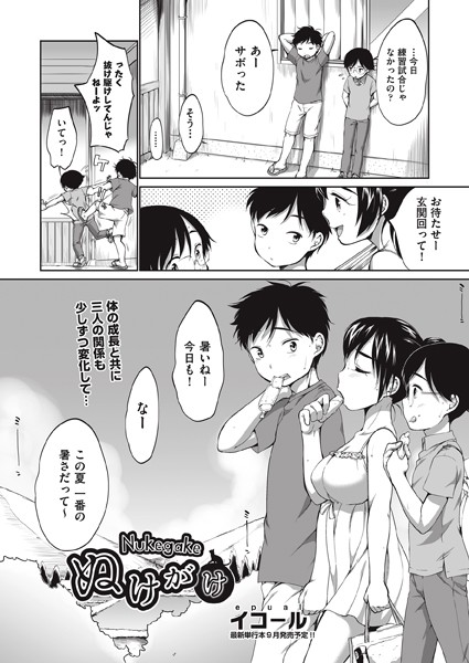 夏になると毎日のように水遊びをしていた仲良しのなつきとショウとケン。ショウはなつきと2人きりで川に行きたくて、ケンの居ない隙に誘ってみるも、抜け駆けは許さないと息を切らしながらやってきたケンと結局3人で行くことに…。泳いだ後にいつも眠ってしまうなつきの体を、くすぐったりつついたりしたことを始まりに「イケナイ」方向へと進んでいた2人は、今日もいつものようになつきが寝たのを確認し、おっぱいを弄りまわしていた…。2人は「弄るのはおっぱいまで」と約束をしていたが、今日はショウが抜け駆けしようとしたからと、ケンはなつきのおま○こに手を出し…!!?