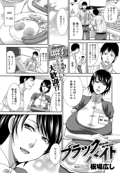 店長に連続勤務を無理に頼まれたファミレスバイトの今村。朝のシフトの有村は落ち着いた時間にモーニングサービスで今村に濃厚バキュームフェラ!昼のシフトの三浦は客席の見えない位置から今村を誘い、生セックスのランチのおごり。深夜のシフトの永野は疲れて寝ている今村をフェラで起こし、疲労でガチガチになった男性器に巨乳でご奉仕する!更にバックから乱暴に挿入して…。1日中きついバイトを頑張ったご褒美に三人の巨乳美女パートさんたちからエッチな労い♪爆乳界のカリスマ・板場広し先生が過酷だけど嬉しいバイトの秘密を描きます!